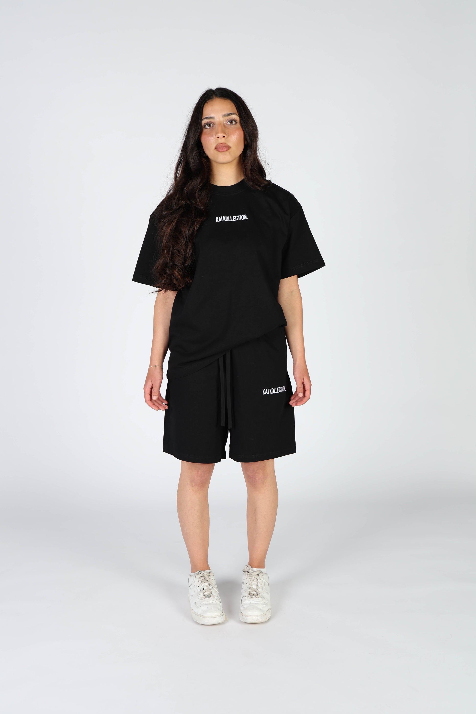 Designed for versatility, this black tee features a slight oversized fit and showcases the classic Kai Kollection logo. It offers both comfort and durability, making it perfect for the gym or a casual, polished look.