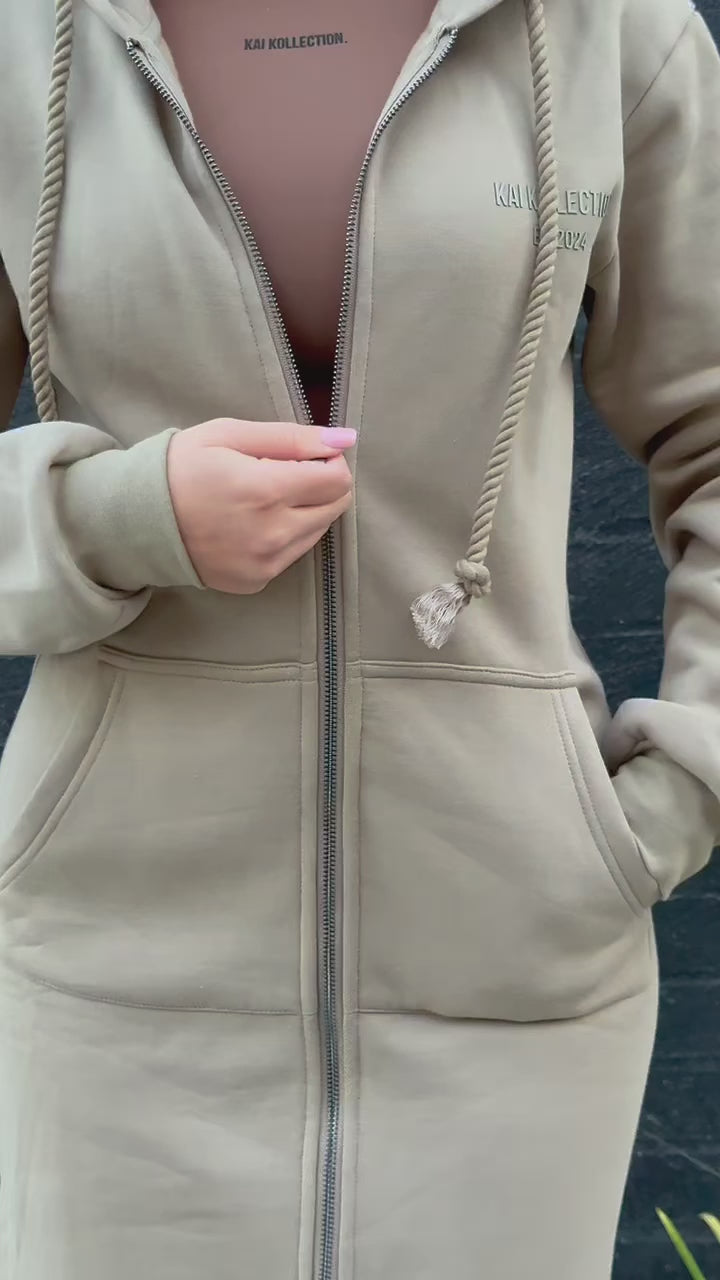 KK Long Line Fleece Jacket Taupe